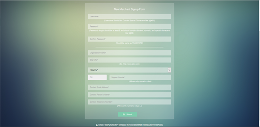 You can directly go on merchant's login page with https:///merchant/index.jsp. After clicking on "Create an account" button you can find the sign up form with below fields: