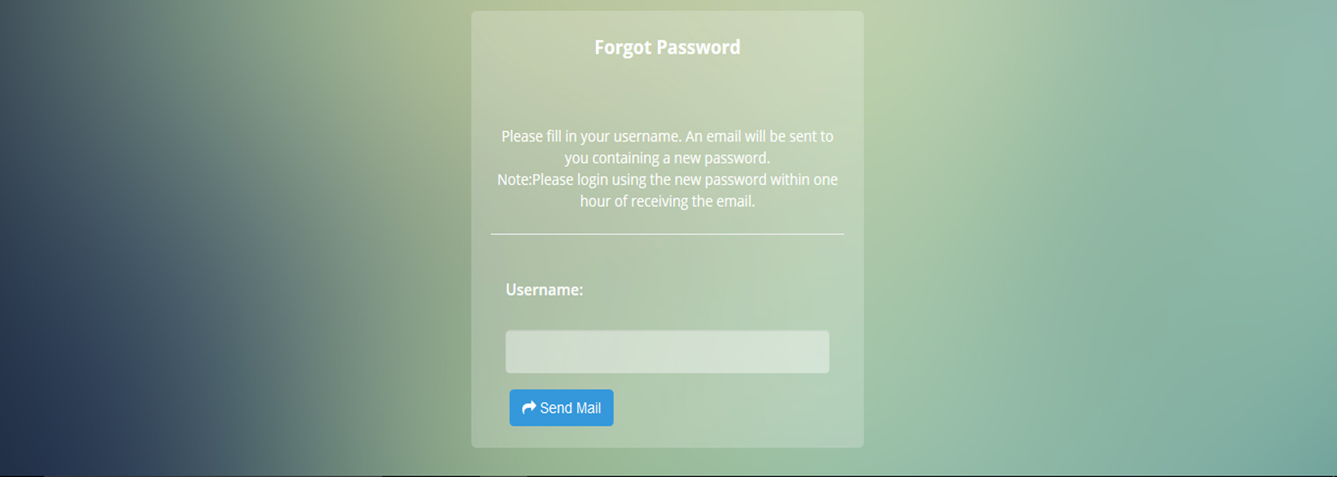 In case you have forgotten your password, you have to click on "Forgot Password" link it will display the page asking for Username. After entering the correct Username, our support team will send you a new password via e-mail.