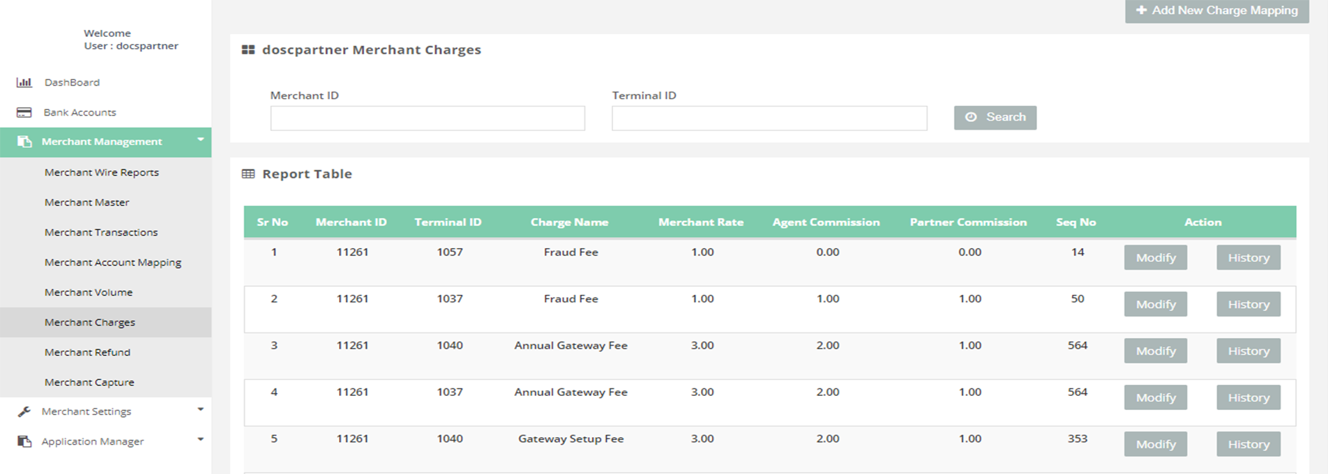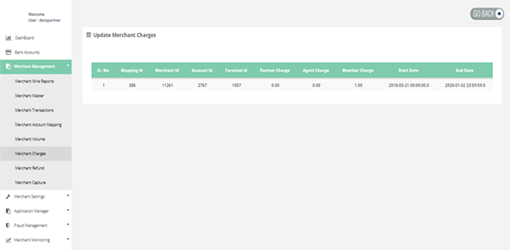 After login you need to click on "Merchant Charges" section under "Merchant Management" tab in the left navigation pannel of Partner's back office.