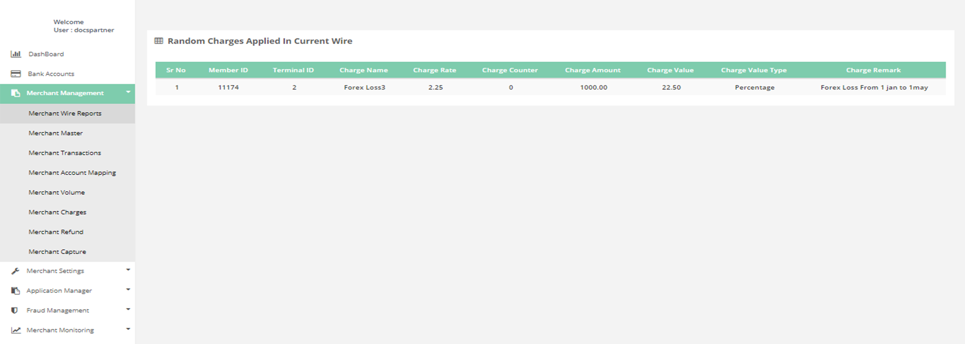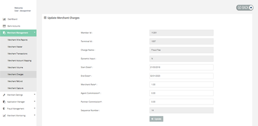 Merchant Management > Merchant Charges
