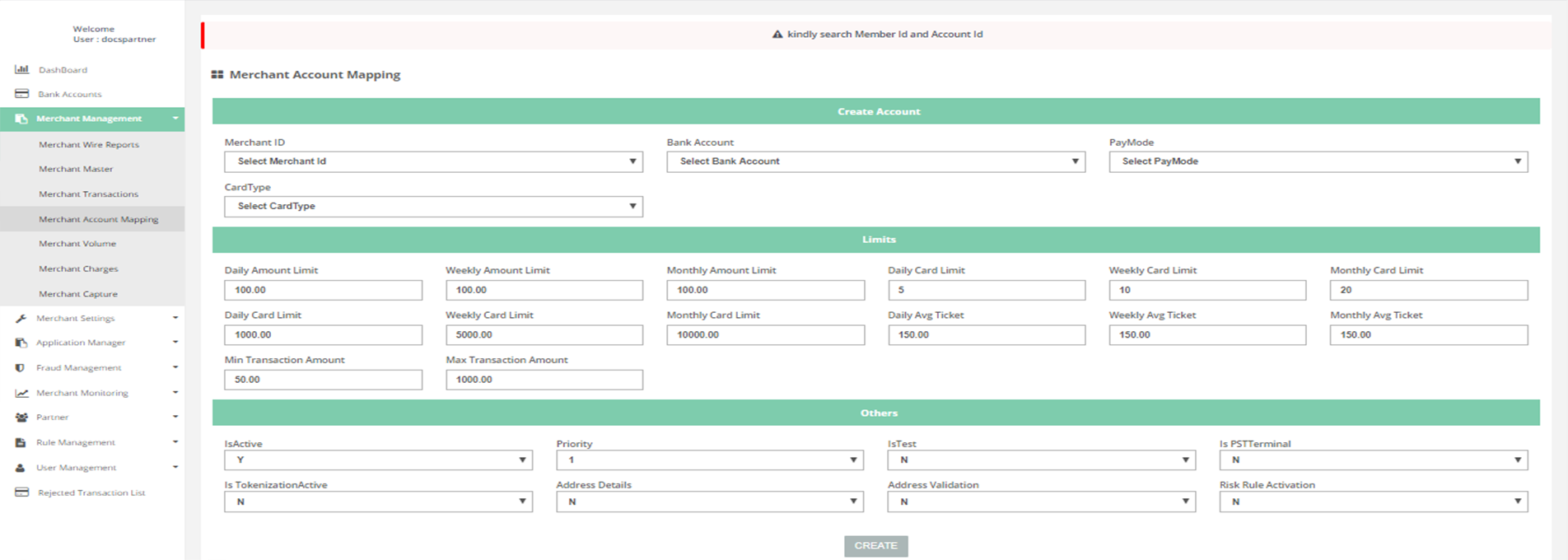Merchant Management > Merchant Account Mapping