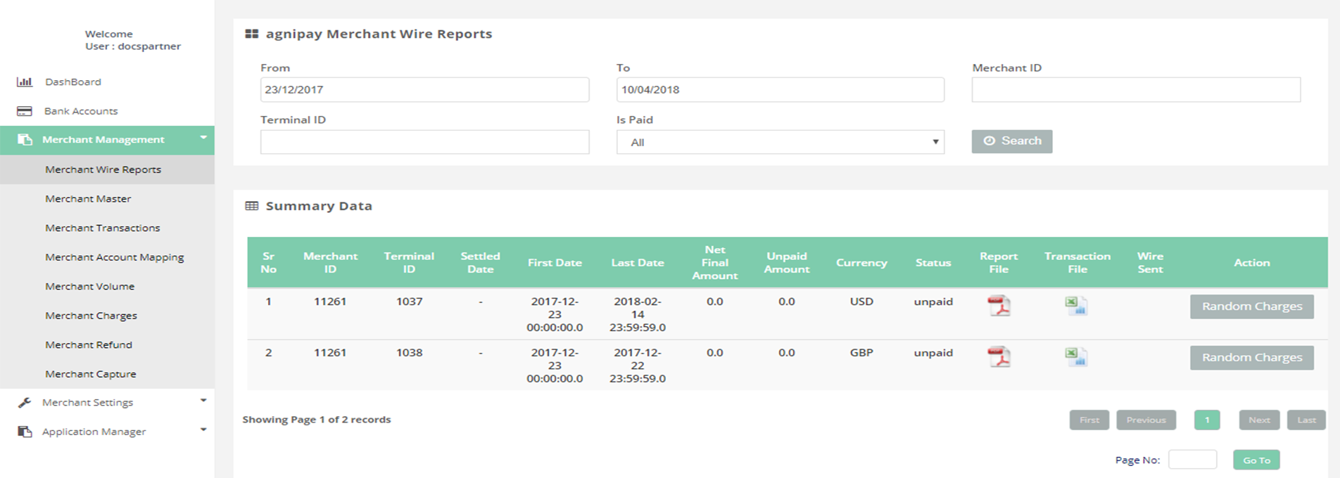 Merchant Management > Merchant Wire Reports