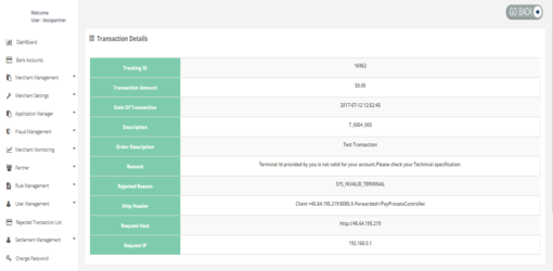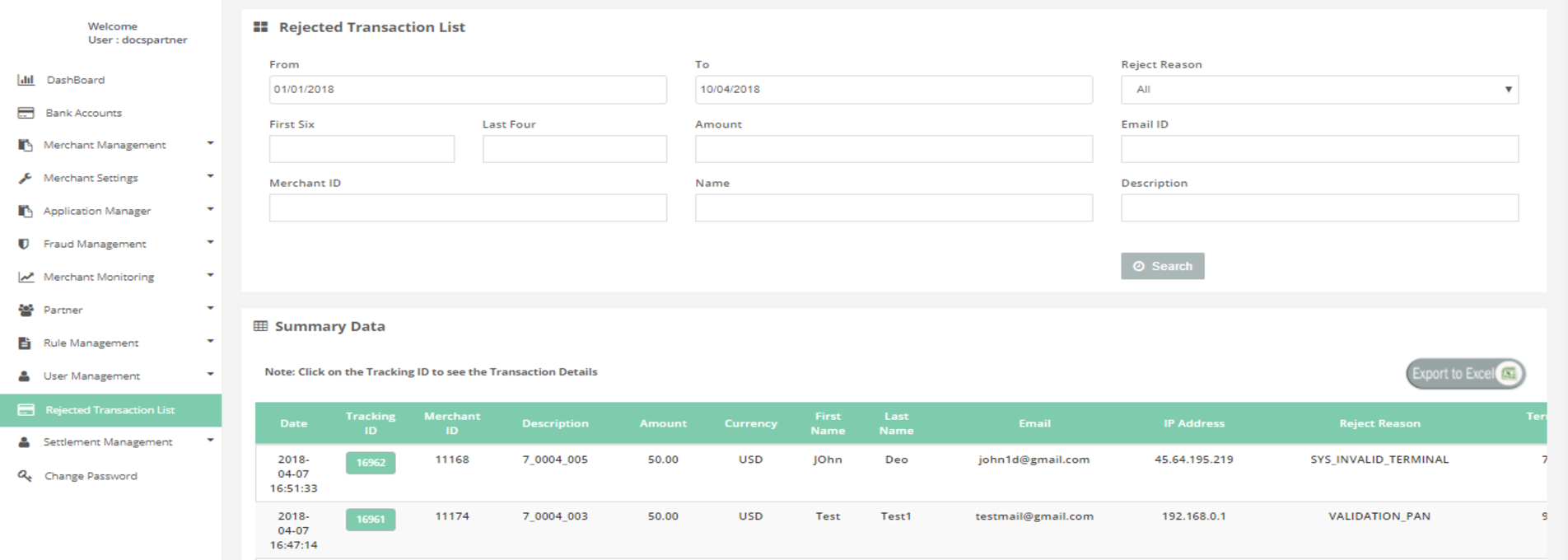 After login you need to click on "Rejected Transaction List" tab in the left navigation pannel of Partner's back office.