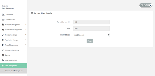 Partner User Management > View Partner User