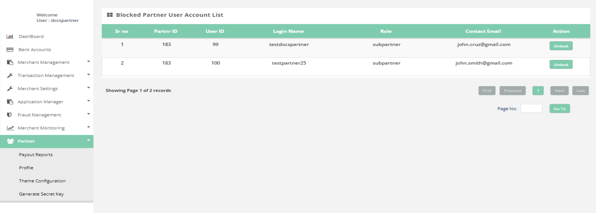 In this page you can unblocked your Partner User account which is blocked.