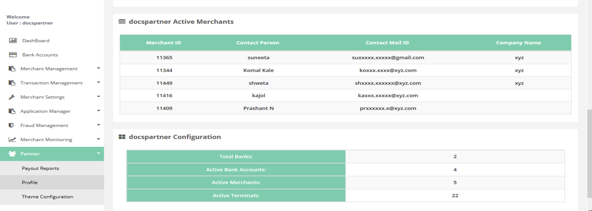 This section displays all partner related information and settings.