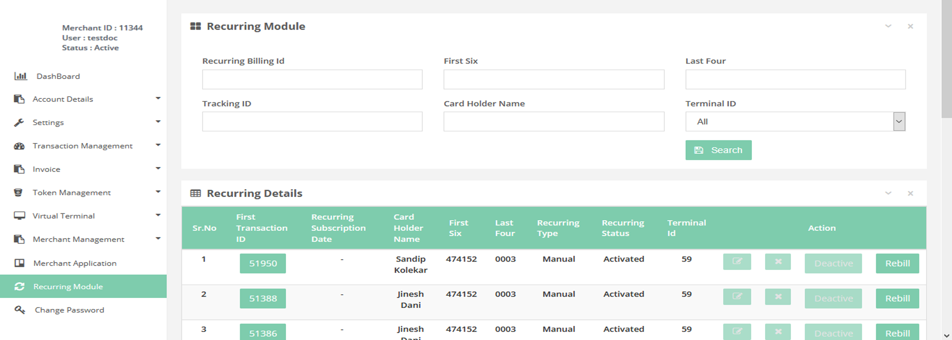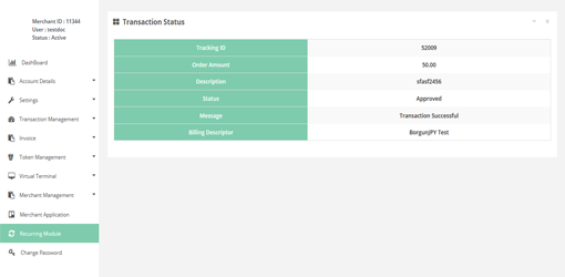 After Login you need to select the terminal under "Recurring Billing" section in the left navigation panel of Merchant’s back office.
