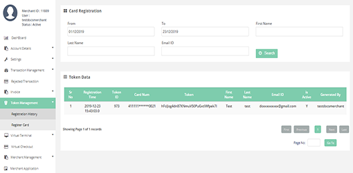 After Login you need to click on "Register Card" tab under "Token Management" section in the left navigation pannel of Merchant’s back office.